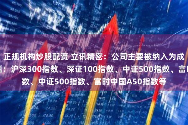 同花顺(300033)金融研究中心12月29日讯正规机构炒股配资,有投资者向立讯精密(002475)提问, 是哪些指数的成分股? 公司回答表示,您好,公司主要被纳入为成份分股的指数包括:沪深300指数、深证100指数、中证500指数、富时中国A50指数等。 【免责声明】本文仅代表作者本人观点正规机构炒股配资,与和讯网无关。和讯网站对文中陈述、观点判断保持中立,不对所包含内容的准确性、可靠性或完整性提供任何明示或暗示的保证。请读者仅作参考,并请自行承担全部责任。邮箱:news_center@st...