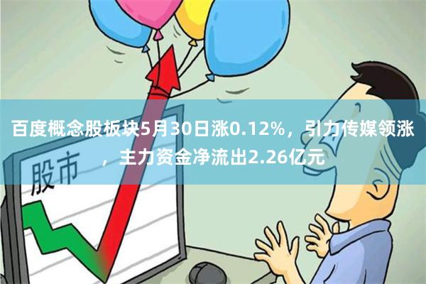 本站消息,5月30日百度概念股板块较上一交易日上涨0.12%,引力传媒领涨。当日上证指数报收于3091.68,下跌0.62%。深证成指报收于9384.72,下跌0.32%。百度概念股板块个股涨跌见下表: 从资金流向上来看,当日百度概念股板块主力资金净流出2.26亿元,游资资金净流入1.21亿元,散户资金净流入1.05亿元。百度概念股板块个股资金流向见下表: 北向资金方面,当日百度概念股板块北向资金持股市值为454.22亿元,增持0.97亿元。其中增持最多的是比亚迪,增持了2.66亿元。减持持最...