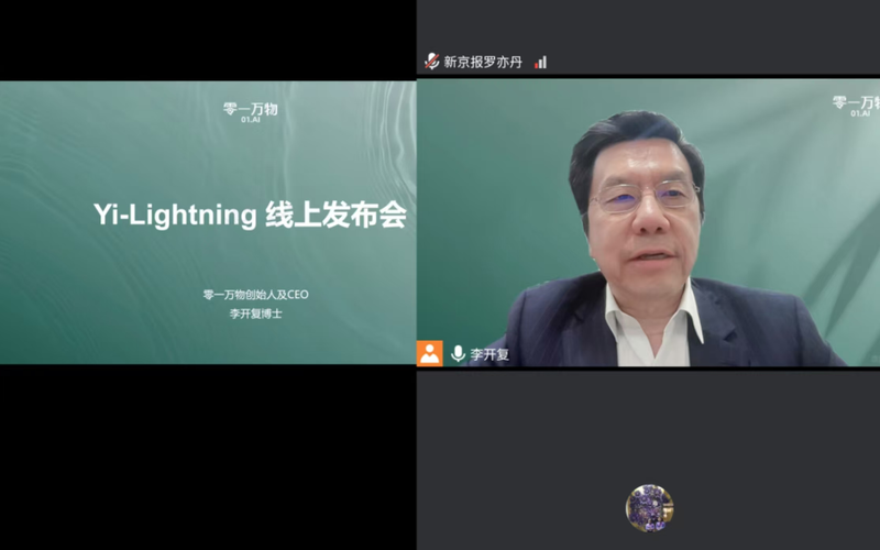 李开复线上接受包括新京报贝壳财经在内的媒体采访线上会议视频截图