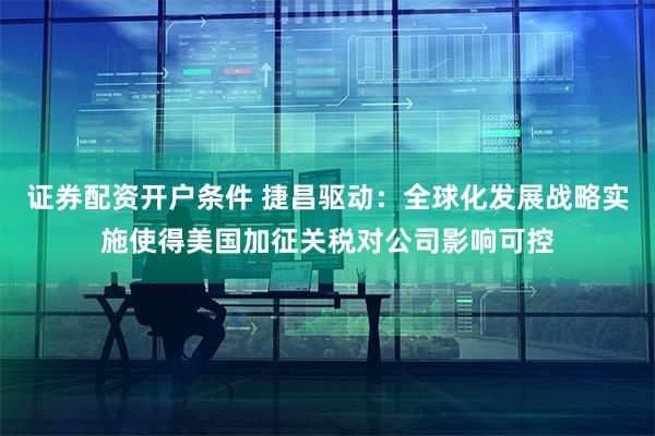 证券配资开户条件 金融界12月5日消息,有投资者在互动平台向捷昌驱动(603583)提问:针对从中国进口的商品,美国将提高关税,对公司出口美国业务有什么影响?对公司利润的影响有多大? 公司回答表示:目前就美国加征关税事项存在不确定性证券配资开户条件,公司将密切关注美国关税政策的变化动态。公司近几年积极实施全球化发展战略,已在海外规划建设东南亚、美国及欧洲生产基地,与国内的生产基地一起构建了全球化的产能布局,能基本满足现阶段全球客户的需求,确保了供应链的稳定性和灵活性,并有效抵御国际贸易风险。受...