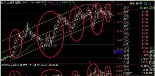 3、如果跌破下轨道线17.4,等待收盘走势,再次突破回来继续持有,如果收盘跌破下轨道等到第二天按照5%止损走人。